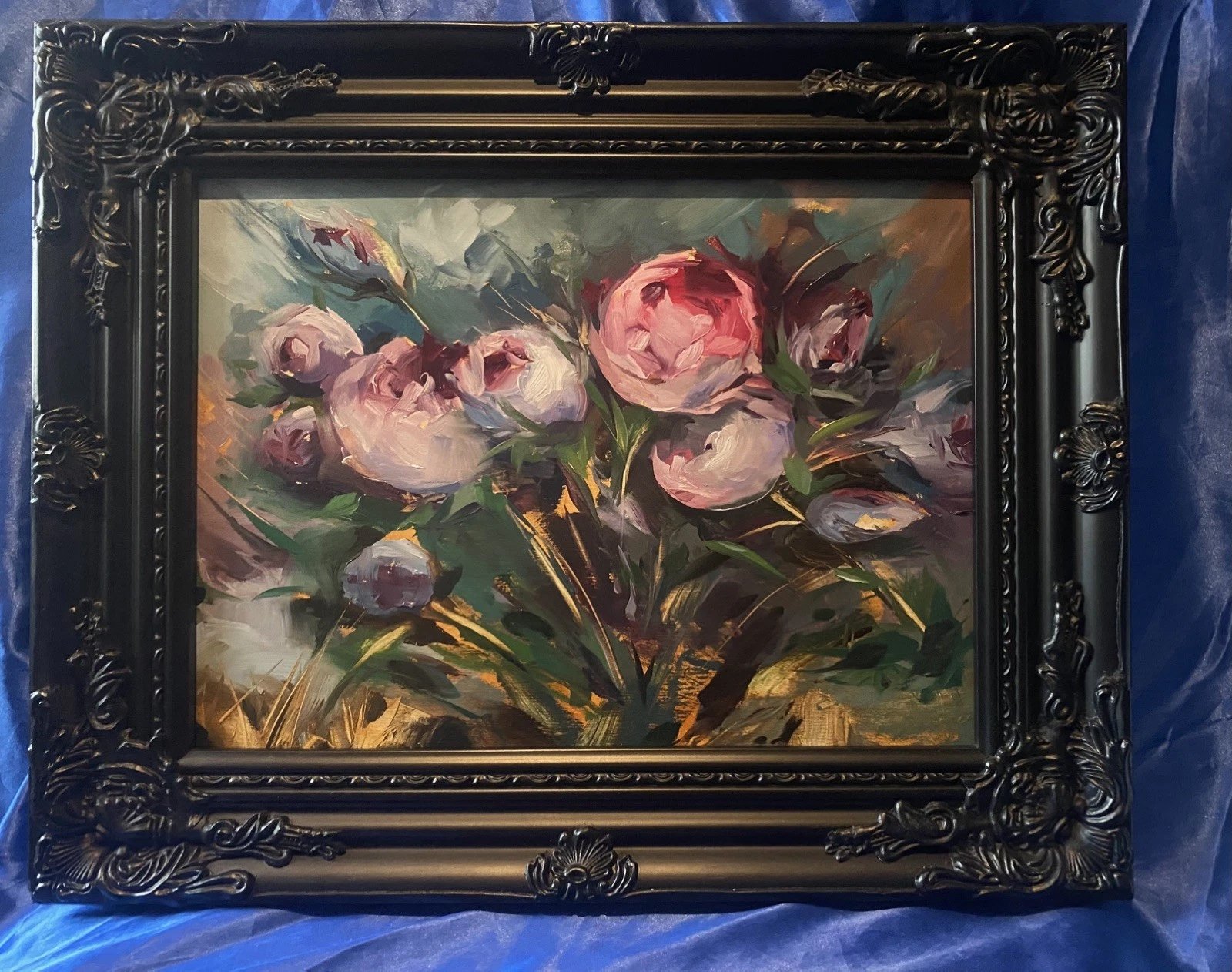 A small oil sketch study of some Peonies.
