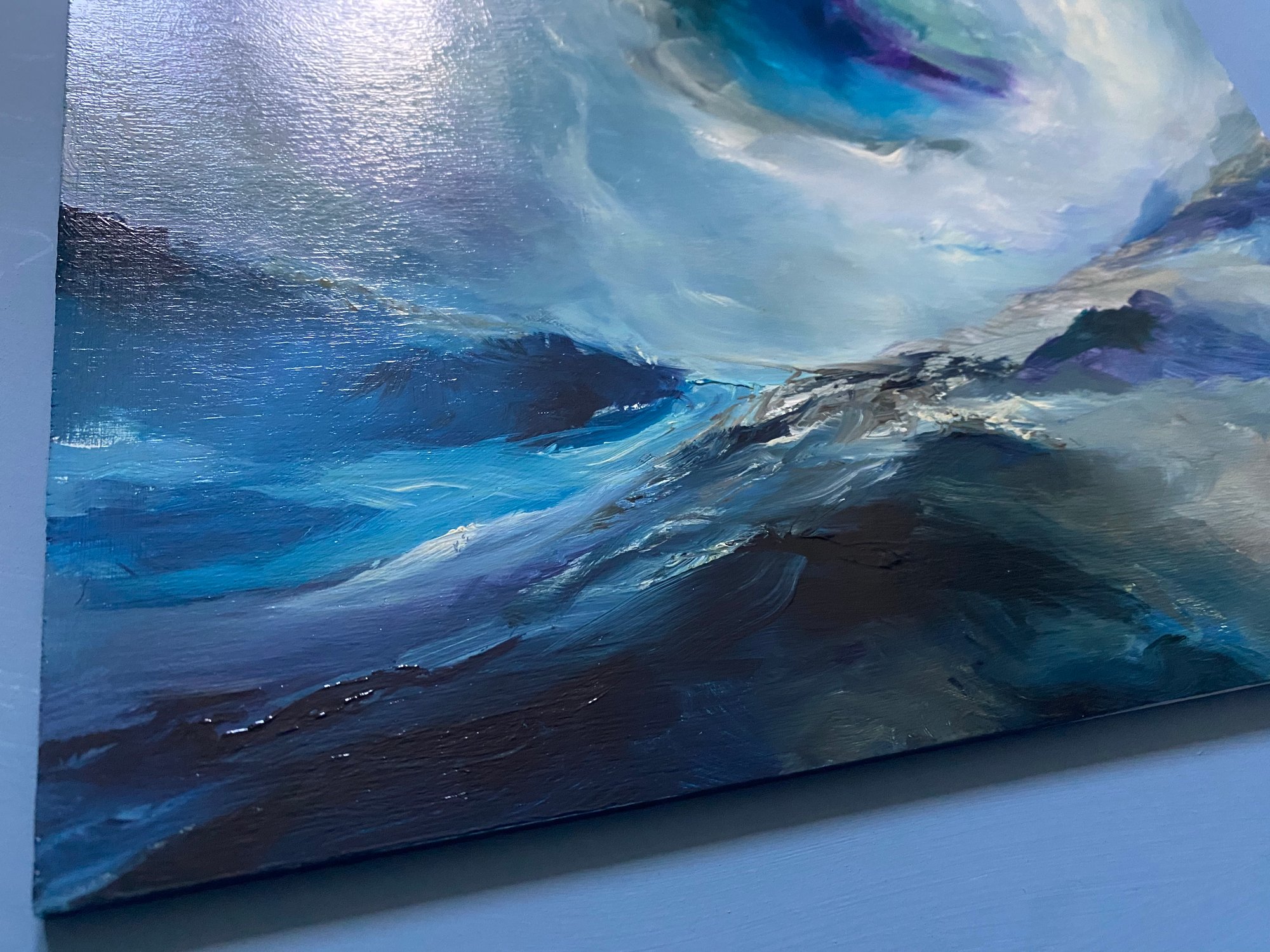 An oil sketch i painted in 2019, showing the overwhelming power & violence at sea, at the hands of the natural living world.